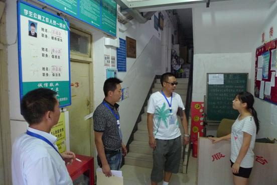 来源:保卫处更新时间:2014年08月06日保卫处开展暑假安全检查确保校园安全近日,重庆市遭遇连续高温,按照重庆市教委关于做好安全管理的要求和校领导的指示,2014年8月6日上午,保卫处钱忠坤处长带领保卫处科处领导对学校安全管理重点单位进行了安全检查,重点检查了科技开发司生产车间、北区高层学生公寓、北区学生公寓、南区学生公寓、教工食堂、南山书院、第二实验楼和新图书馆施工工地。受检单位带班领导在岗在位,...