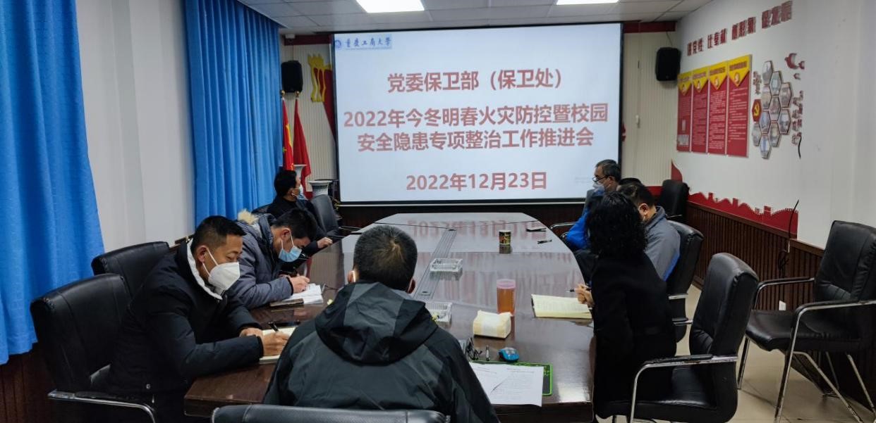 12月30日上午,机关七支部、党委保卫部(保卫处)在会议室召开岁末年初安稳工作推进会。全体保卫干部、安保大队队长副队长参加了会议,会议由支部书记、党委保卫部部长(保卫处处长)钱忠坤同志主持。会上,钱忠坤同志传达了学校《关于2023年元旦节放假安排的通知》《关于加强2023年元旦、春节、寒假期间作风建设的通知》《重庆市教育委员会办公室转发关于扎实做好企业复工复产安全生产工作的通知》(〔2022〕—511)、《中共重...
