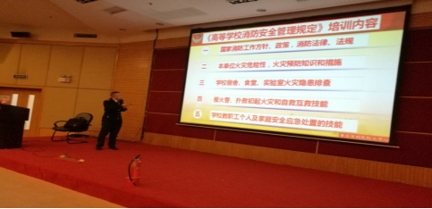 为切实加强今冬明春火灾防控工作,全力维护学校安全稳定,根据《重庆市教育委员会关于印发2017年教育系统今冬明春火灾防控工作方案的通知》(渝教安发〔2017〕54号)及《重庆工商大学今冬明春火灾防控工作实施方案》的要求和部署,保卫处作为职能监督部门,全面开展了今冬明春火灾防控工作。2017年11月23日下午,在博智楼7200报告厅组织开展了消防安全知识培训活动,来自会计学院、研究生院、实验室、食堂,葆力物业、新大正物...