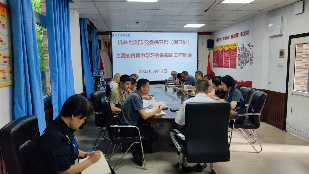 6月12日,机关七支部、党委保卫部(保卫处)在支部党员活动室召开了主题教育集中学习会暨每周工作例会。支部党员、保卫干部、安保大队队长和副队长参加了会议,会议由支部书记、党委保卫部部长(保卫处处长)钱忠坤同志主持。集中学习会上,同志们自带学习资料,集中学习了【习近平新时代中国特色社会主义思想专题摘编】第十二部分《坚持人与自然和谐共生》(P371—399),跟进学习了《习近平致首届文化强国建设高峰论坛的贺信...