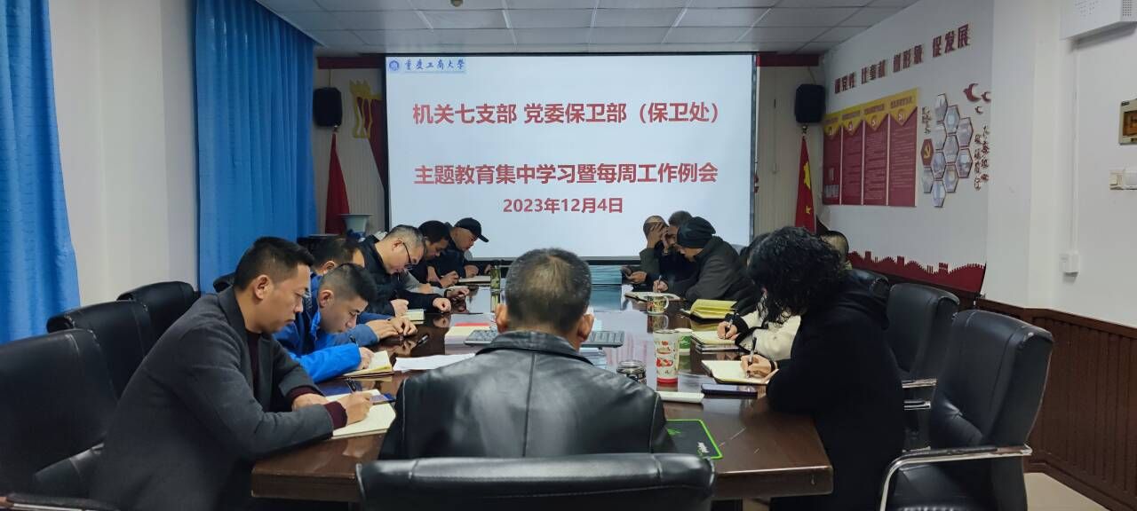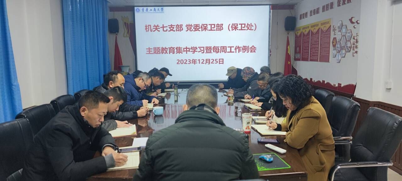 12月18日下午,机关七支部、党委保卫部(保卫处)在支部党员活动室召开了主题教育集中学习暨每周工作例会。支部党员、保卫干部、安保大队队长和副队长参加了会议,会议由支部书记、党委保卫部部长(保卫处处长)钱忠坤同志主持。会上集中学习了《习近平在二十届中央机构编制委员会第一次会议上的讲话》《习近平对低温雨雪冰冻灾害防范应对工作作出重要指示》《习近平在广西考察时的重要讲话精神》等资料。会议传达了《重庆市教...