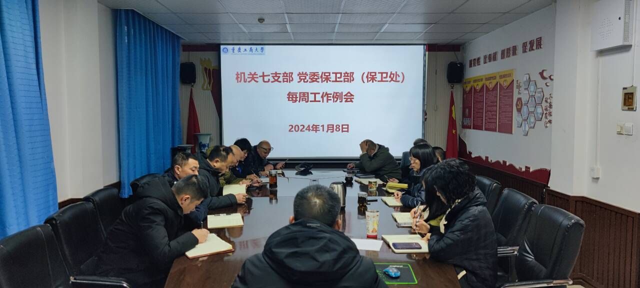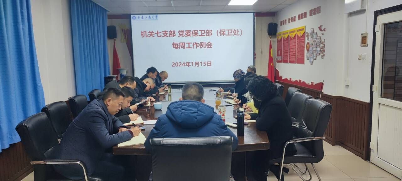 1月15日上午,机关七支部、党委保卫部(保卫处)在保卫处会议室召开了每周工作例会。支部党员、保卫干部、安保大队队长和副队长参加了会议,会议由支部书记、党委保卫部部长(保卫处处长)钱忠坤同志主持。会上集中学习了《习近平在二十届中央纪委三次全会上发表重要讲话》《中国共产党第二十届中央纪律检查委员会第三次全体会议公报》《习近平对政法工作作出重要指示》等资料。会议传达了《重庆市教育委员会关于做好近期交通安...
