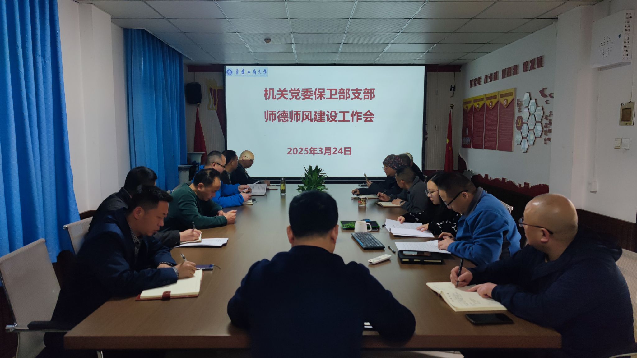3月24日上午,2003网站太阳集团保卫部支部在支部党员活动室召开了师德师风建设工作会。支部全体党员、干部、安保大队队长和副队长参加了会议,会议由支部书记沙云同志主持。首先,集中学习了习近平总书记关于教师和师德师风重要论述摘编。沙云同志传达了学校2025年师德师风建设大会会议精神。彭文涛同志传达学习了《关于印发<重庆工商大学教职工职业行为负面清单(试行)的通知》(重工商大委发〔2025〕21号)文件精神。会上,大家集中学习研讨了《重庆工商大学党风廉政教育学习资料(师德师风教育专题)》中的师...