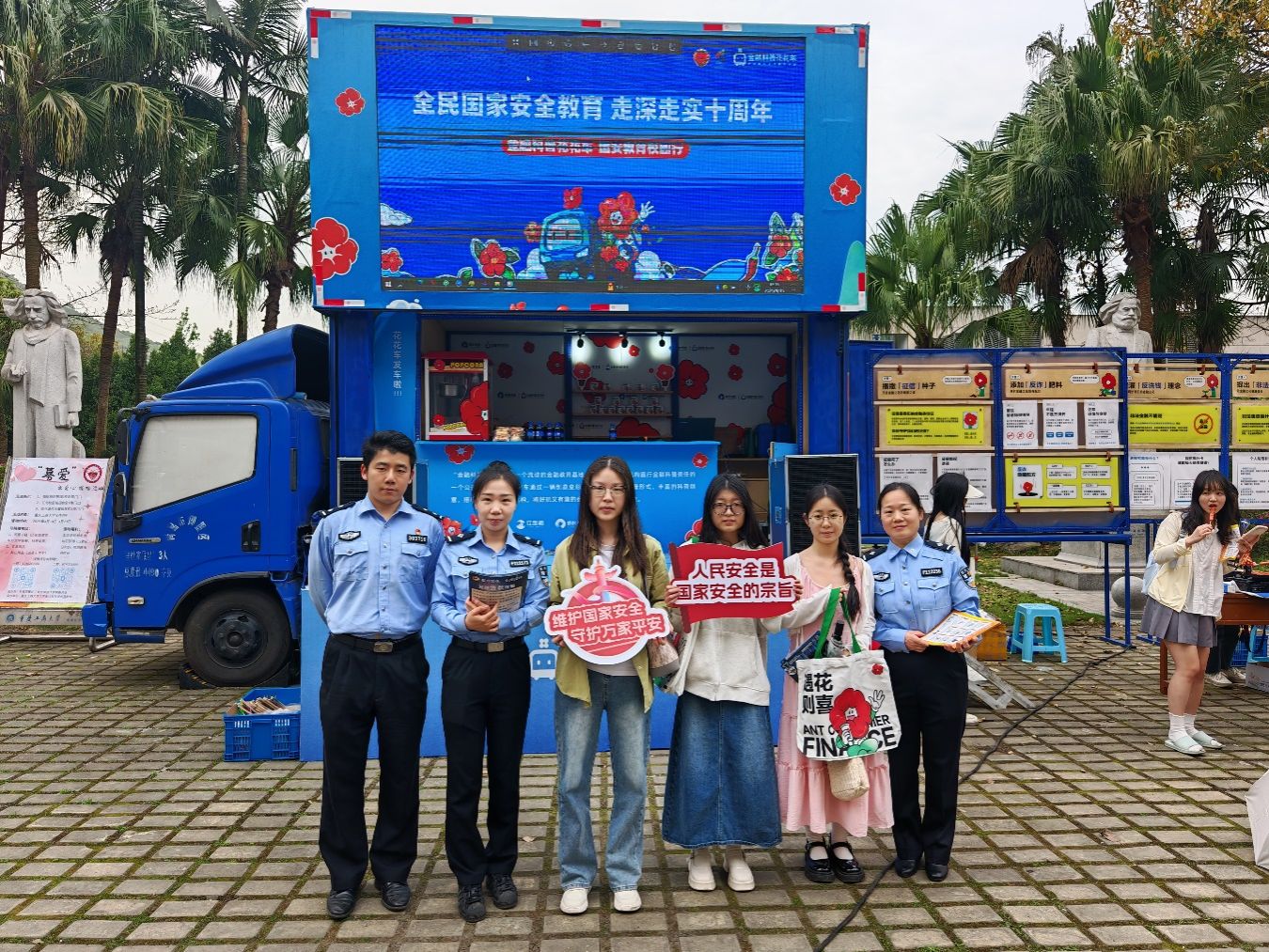2025年4月15日,南岸区公安分局联合重庆工商大学保卫处在南岸校区博智楼前举办了“金融科普花花车”进校园活动,在南岸校区博智楼前开展了国家安全、理性消费、呵护征信、防范非法集资、反网络诈骗等知识科普活动。南岸区公安分局网安支队、反诈中心、四公里派出所警官,保卫处沙云处长、邱胜祥副处长等人员参加。