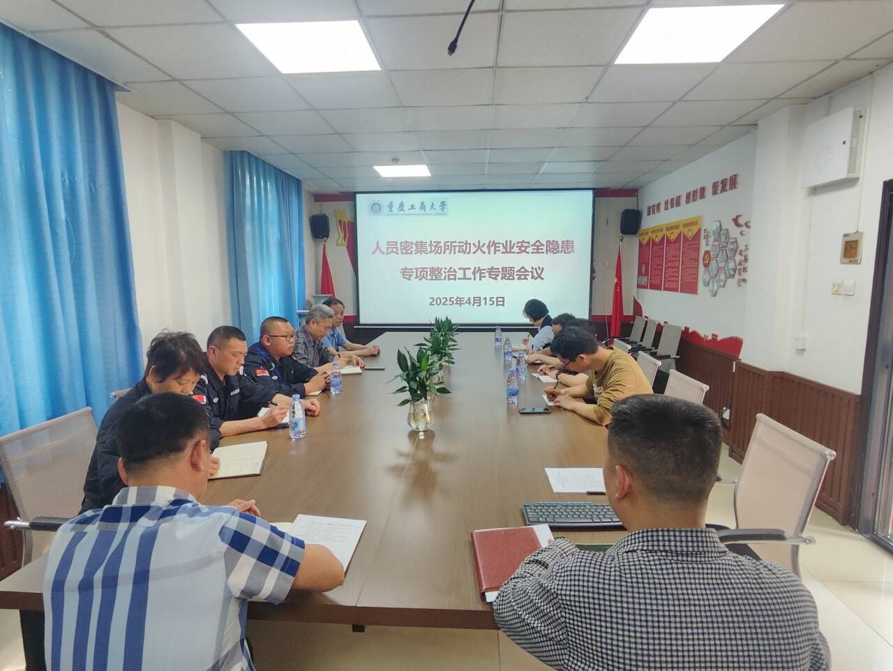 2025年4月15日下午,学校在保卫处会议室召开了重庆工商大学人员密集场所动火作业安全隐患专项整治专题会,会议由党委保卫部(保卫处)沙云部长(处长)主持,后勤处、基建处、党委保卫部(保卫处)、校园安保大队、物业、负责校内零星维修公司等相关单位负责人参加。会上,党委保卫部(保卫处)王树坤副部长(副处长)传达了重庆市安全生产委员会关于印发《全市人员密集场所动火作业安全隐患专项整治工作方案的通知》、《重庆市教育委员会转发重庆市安全生产委员会关于印发全市人员密集场所动火作业安全隐患专项...