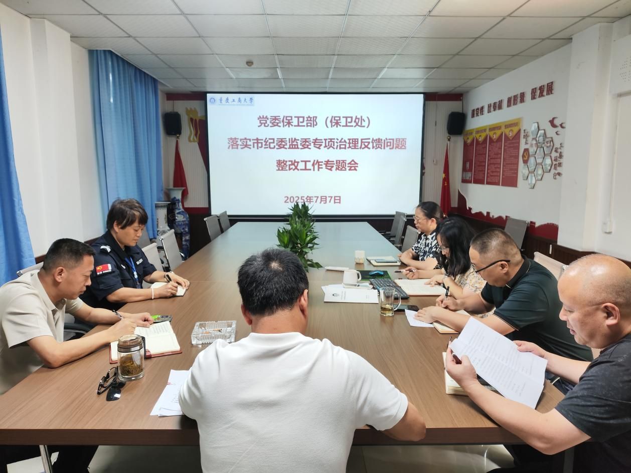7月7日上午,党委保卫部(保卫处)在会议室召开了“党委保卫部(保卫处)落实市纪委监委专项治理反馈问题整改工作专题会”。保卫处全体处务会成员、安保大队队长参加会议,会议由党委保卫部部长(保卫处处长)沙云同志主持。沙云处长传达了学校7月2日召开的专项治理发现问题整改工作专题会暨党风廉政建设集体约谈会会议精神,传达了中共重庆工商大学委员会印发的《关于落实市纪委监委专项治理反馈问题的整改工作方案》(重工商大委发〔2025〕69号)文件精神。会上就“重庆工商大学南岸校区(兰花湖片区)校园...