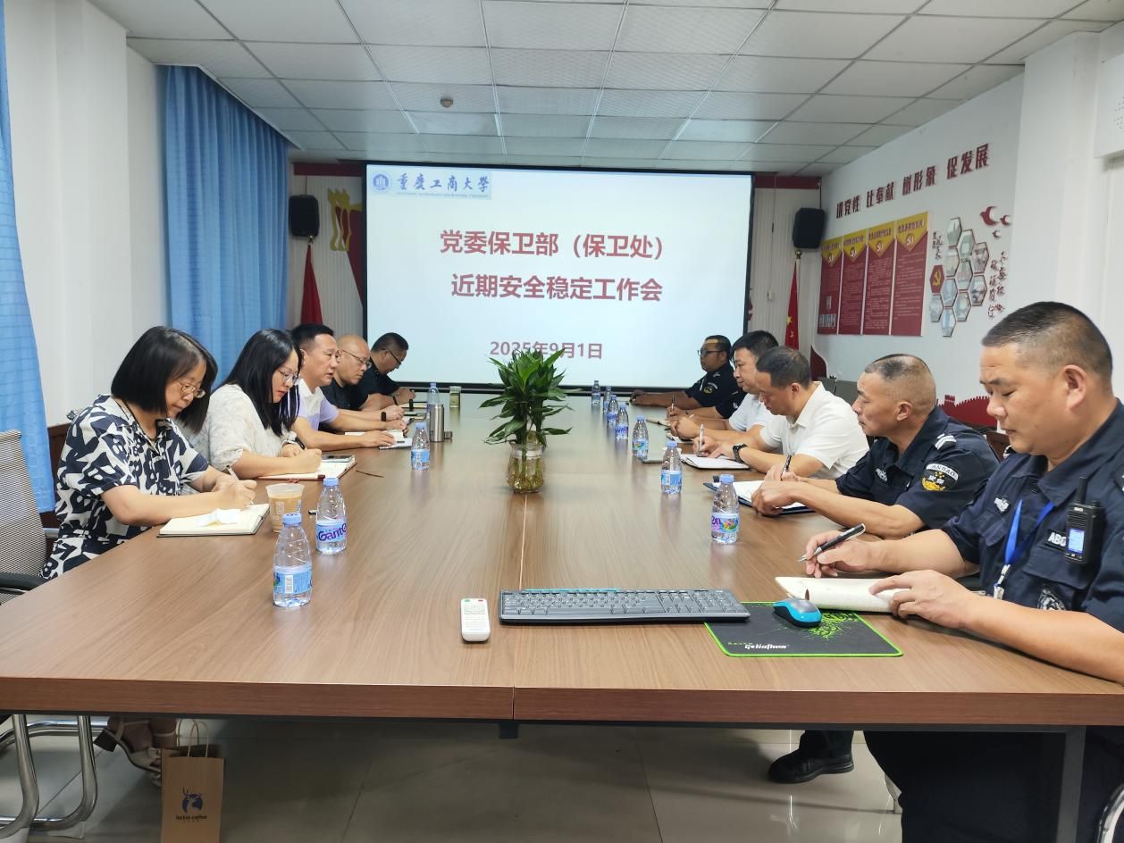 2025年9月1日上午,党委保卫部(保卫处)在会议室召开了近期安全稳定工作会。党委保卫部(保卫处)处务会成员、重庆市巴南保安服务有限公司、上海永升物业管理有限公司相关人员参加了会议,会议由党委保卫部部长(保卫处处长)沙云同志主持。第一阶段,校园安保服务工作顺利完成新旧交接。首先,沙云处长对巴南保安公司10年来在工商大学的工作成效给予了充分肯定,并对其为学校安全工作作出的贡献表示感谢。随后,两家安保公司领导对校园安保工作进行了沟通交流,永升物业正式接管我校安保服务工作。同时,沙云...