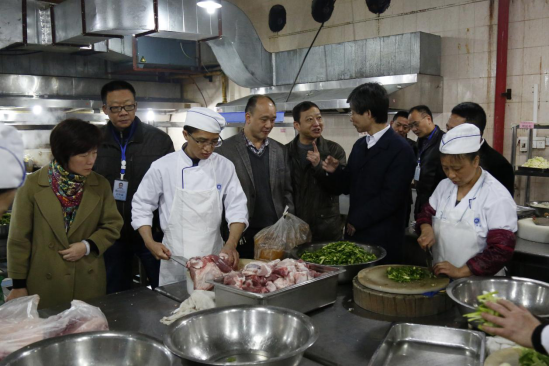 同日,学校安全隐患排查整改领导小组第二工作小组组长校长孙芳城同志带队,与分管安全稳定工作的宋豫副校长一道,带领党政办、保卫处、后勤处、后勤集团等有关职能部门,专门检查了学校兰园食堂(教工食堂)的食品卫生安全,对食堂的水电气设施,消防通道,食品采购、存储、加工等环节,食品留样,人员资质,安全教育与培训等方面的情况进行了认真检查,对发现的安全隐患责成后勤集团限期整改。