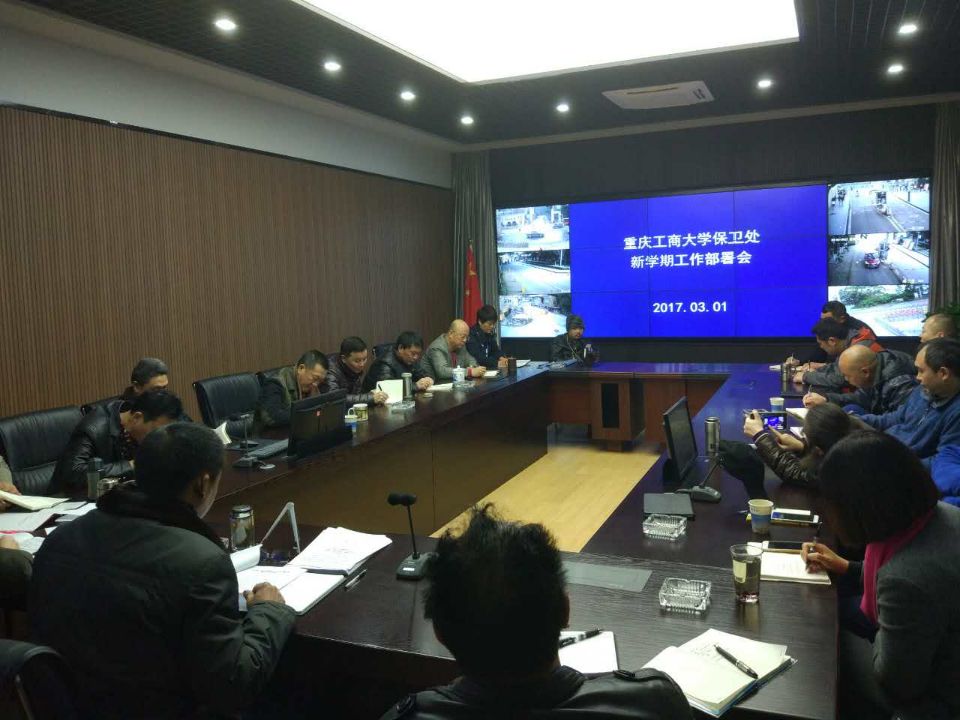 2017年3月2日星期四上午,保卫处在监控指挥中心召开了新学期安全保卫工作部署大会,会议由党委保卫部部长、保卫处处长钱忠坤主持,全体保卫干部和安保大队领导参加了大会。