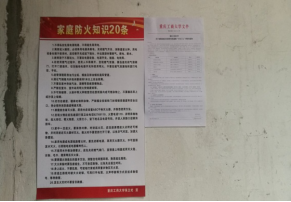 (三)印制《家庭防火知识20条》200份,并在在南岸校区、江北校区家属区每个单元张贴。并督促学府苑文苑物业张贴到各单元门口、顺之物业张贴到翠湖山庄各楼栋。