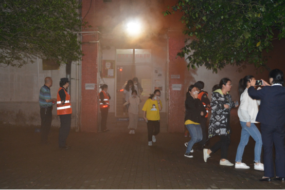 21时30分, 随着演练总指挥的一声令下,演练正式开始,此时5栋学生公寓烟雾冉冉升起, 公寓501名学生用毛巾捂住口鼻、弯腰穿过烟雾区域,在疏散引导员的指挥下,5分中后安全、紧张、有序的疏散到了楼栋外安全区域…………。
