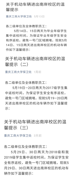 根据校门实际情况,在一号门两侧人行道安装了红外线测温棚,将其中一个测温棚作为学生进出专用通道,实行师生分流,并划分了进出扫码区、手工登记区、临时等候区,使学生入校流程更顺畅、高效。为方便教职工通勤,工作日早晚高峰时段限时开放二号门,并三次发布《关于机动车辆进出南岸校区的温馨提示》,在学生集中返校期间,将二号门开放时间从早上7:00延长至晚上7:00。学生分批集中返校期间,正是因为保卫处对进出校园人员、车辆进行了有效分流,确保了校门口进出安全畅通有序。