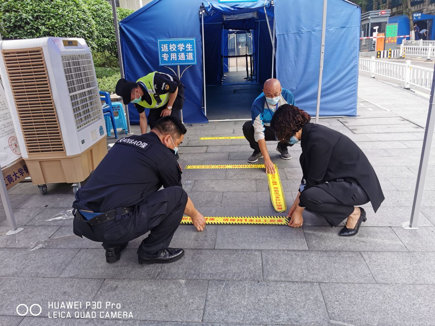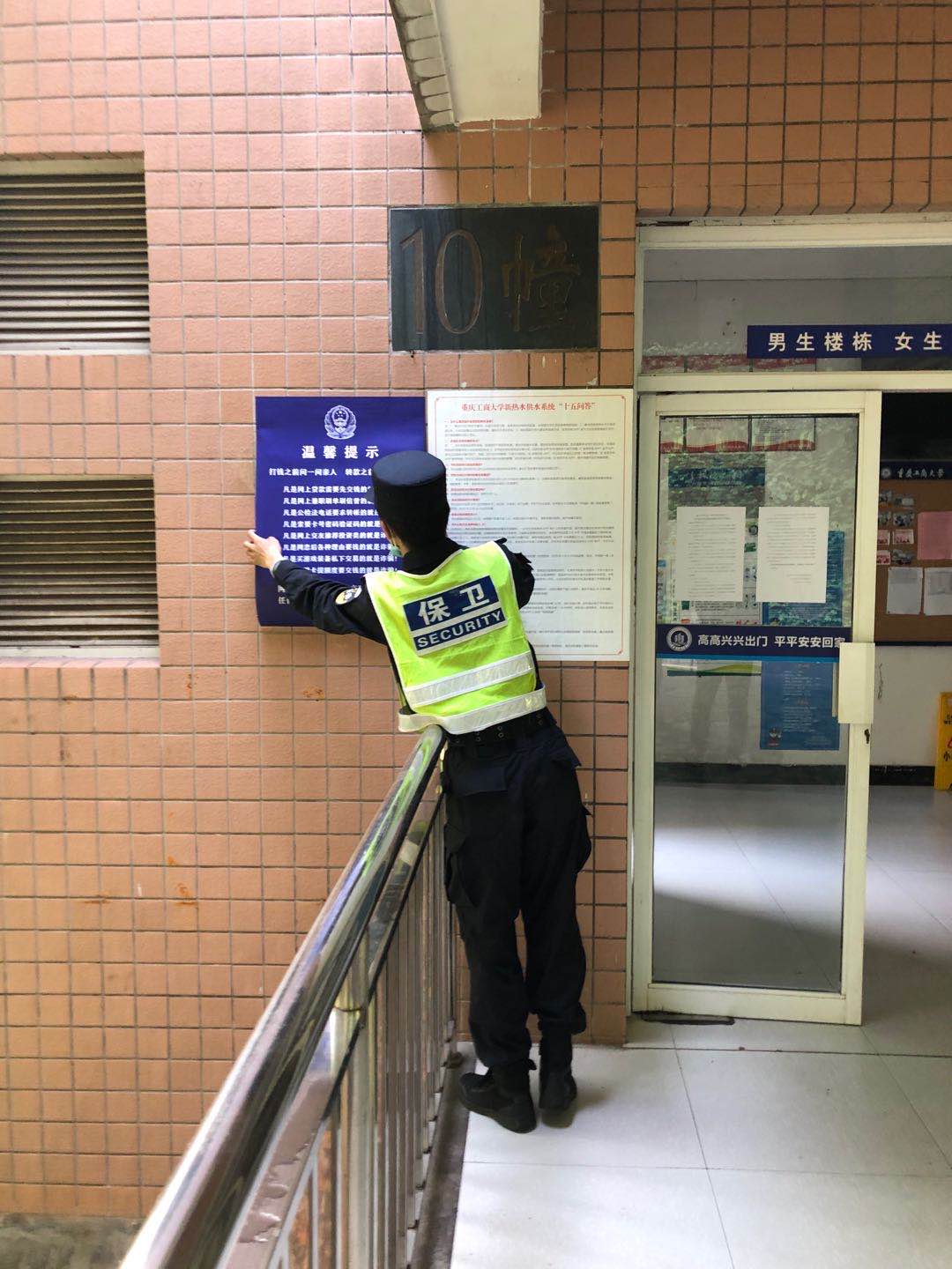 对外,保卫处配合学府路社区和四公里派出所工作人员来校开展宣传教育、居家隔离检查、体温检测等工作;配合南岸区教委核查返渝人员;向相关部门及时报送学生返校数据等。学生分批集中返校期间,门卫管控工作得到四公里派出所、五公里派出所、交巡警西区大队、街道、社区等单位的大力支持。