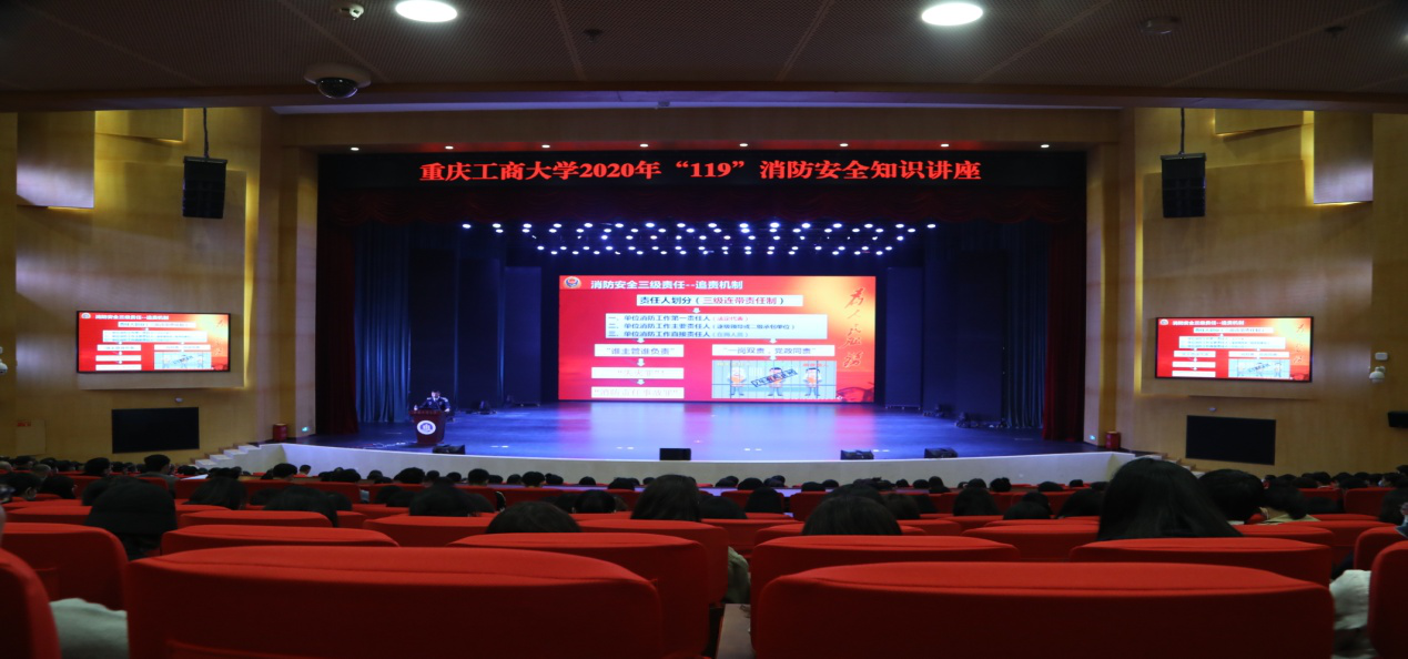 为了全面贯彻落实《重庆市教育委员会关于开展2020年“119”消防宣传月活动的通知》渝教安函〔2020〕14号文件精神,按照《重庆工商大学2020年“119”消防宣传月活动的实施方案》要求,11月6日下午,保卫处与学生处在图书馆剧场联合举办了以“关注消防、生命至上”为主题的2020年“119”消防安全知识讲座。来自葆力物业、新大正物业、幼儿园、各食堂、学生公寓楼层长、重点工种人员等600多名师生员工参加了集中培训。