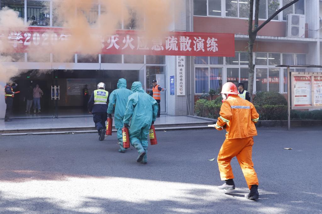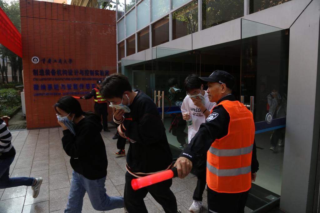 作为我校2020年“119消防宣传月”系列活动之一,此次演练由保卫处联合科研处、教务处、环资学院、机械工程学院、人工智能学院在实验室较为集中的睿智楼举行,演练内容包括火灾报警、应急疏散、火场救人、现场灭火、油盆灭火等,全体保卫干部、校园安保服务大队队员、葆力物业管理人员、睿智楼当天在楼栋内的所有人员和环资学院、机械工程学院、人工智能学院部分学生参加了此次演练。