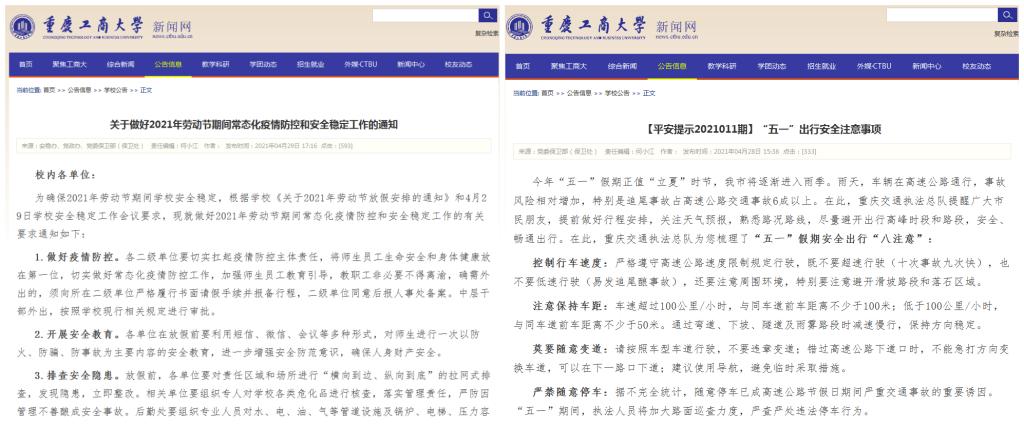 2021年五一节一共放假5天,为确保放假期间学校安全稳定,党委行政高度重视,4月30日召开安稳工作会,对五一节期间的安全稳定工作进行了专门部署,放假期间,孙芳城校长、宋豫副书记先后到一号门检查了门卫管控工作。根据学校安稳会议的部署和宋豫副书记的要求,党委保卫部(保卫处)高度重视,深入践行“学党史,悟思想,办实事,开新局”要求,狠抓各项工作落地落实。协助党政办发布了《关于做好2021年劳动节期间常态化疫情防控和安全稳定工作的通知》,在校园网上发布了《“五一”出行安全注意事项》,开展了节前安全大检查,制定了《党委保卫部(保卫处)2021年劳动节安全稳定工作方案》,落实了保卫干部值班安排和校园安保服务大队勤务安排。期间,值班保卫干部带领安保大队坚守值班岗位,加强门卫管控,受理学生进出扫码70048人次,核查进出校园车辆6906台次;强化面上巡查,对重点部位巡查510次;应对极端天气,发布预警信息20条,协助后勤处、物业公司积极处置暴雨造成的树木倒塌等安全隐患30余起;深化校警联动,向四公里、五公里派出所报送学校安稳情况22份;提供安全服务,受理外来人员、车辆信息报备121条,为师生员工提供安全服务54人次,受理处置报警求助3起。通过扎实有效的工作,确保了五一节期间学校安全稳定。