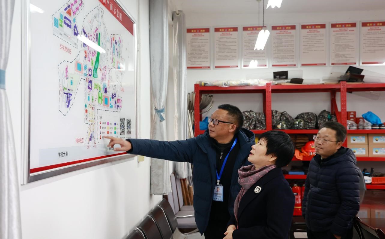 为深入贯彻落实《重庆市教育委员会关于切实做好当前校园安全稳定工作的紧急通知》(渝教安发〔2022〕1号)要求,切实做好寒假期间各项安全工作,确保学校安全稳定,1月16日下午,党委副书记宋豫带队开展了寒假前安全检查。保卫处、学生处、后勤处、工商管理学院、经济学院等部门负责人及相关工作人员陪同检查。