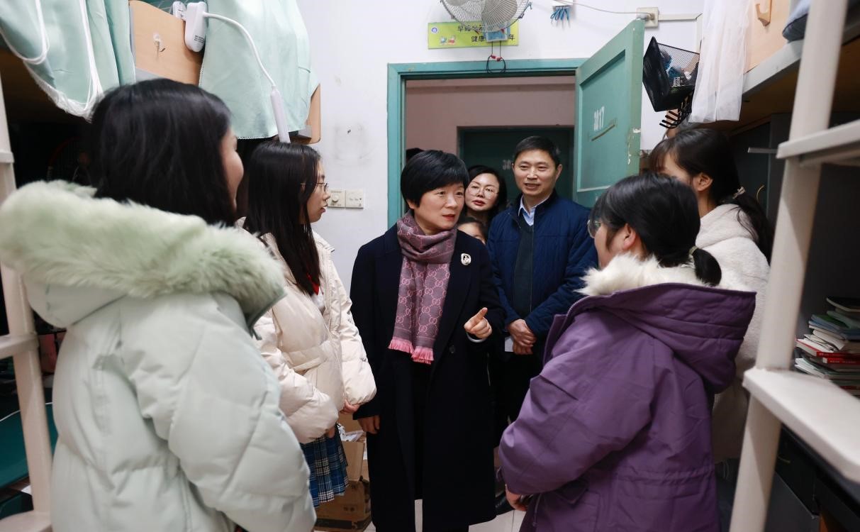 在学生公寓,宋豫副书记详细了解寒假留校学生数量、住宿及日常管理等情况后,要求相关单位一定要通力合作,做好留宿学生的安全、管理与服务工作。在与部分留宿学生交流中,宋豫副书记嘱咐他们要合理安排假期的学习和生活,并祝福他们新年快乐。