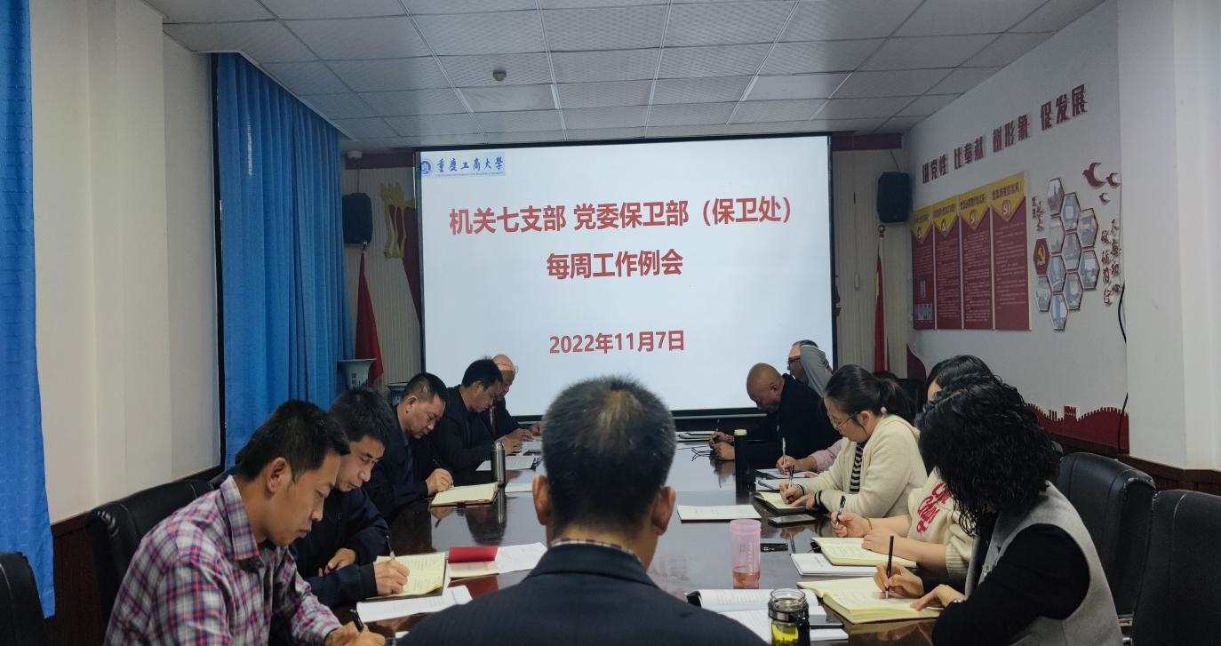 17:00,机关七支部 党委保卫部(保卫处)每周例会议程,分析研判本周安稳形势,安排布置本周党建“双创”、门卫管控、疫情防控和安全稳定工作。