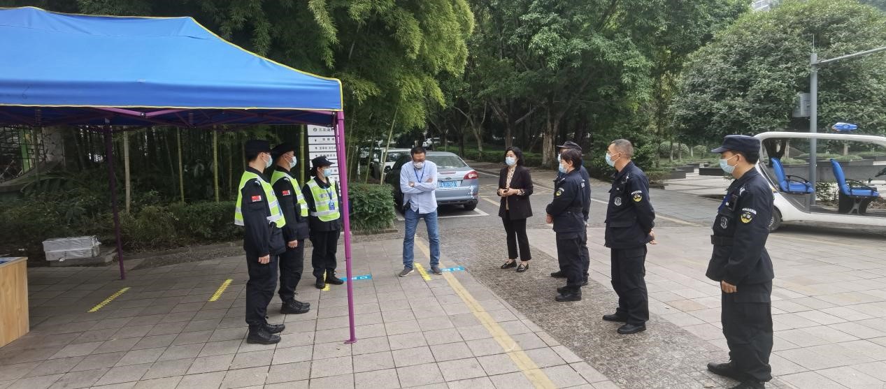 7:40,曹晓丽带领治安科做好门卫管控工作。