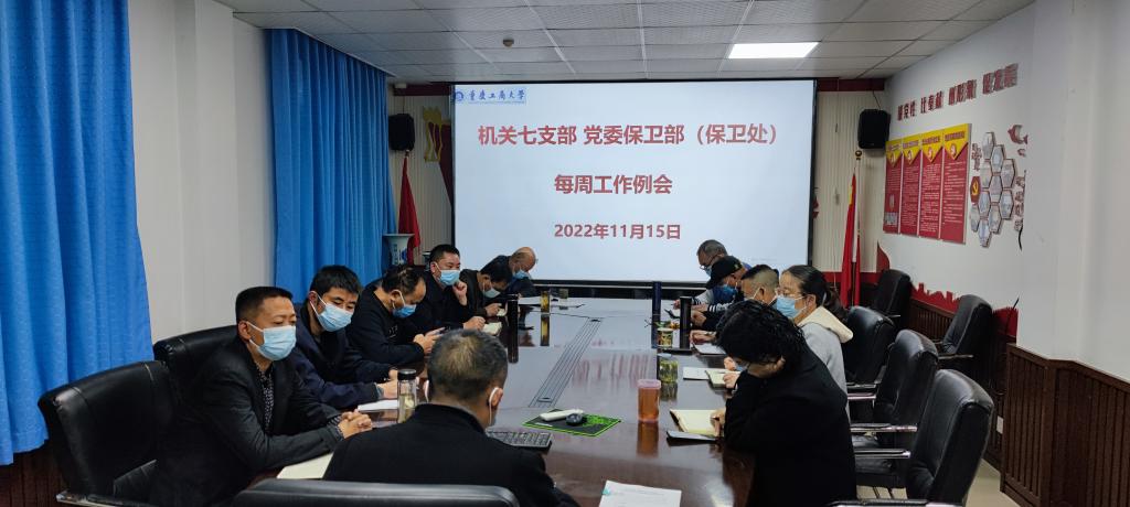 9:24,机关七支部党委保卫部(保卫处)在会议室召开每周工作例会。要求所有党员、干部要以党的二十大精神为统领,坚定信心,扛起责任,把各项工作落地落细落实,坚决守住校园疫情防控防线,全力维护学校安全稳定。