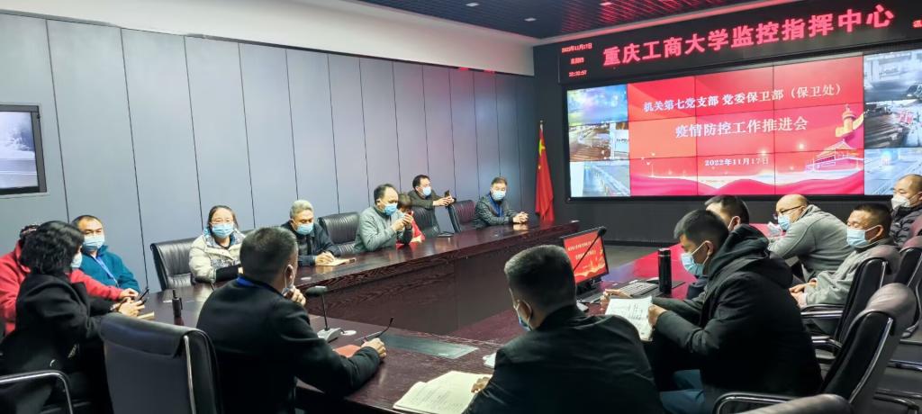 22:40,机关七支部、党委保卫部(保卫处)在视频监控中心召开了疫情防控工作推进会。