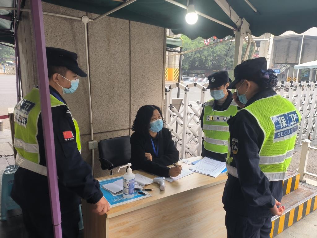 16:05,宋豫副书记到1号门检查门岗管控和进校物品消毒工作,并到家属区检查疫情防控工作。