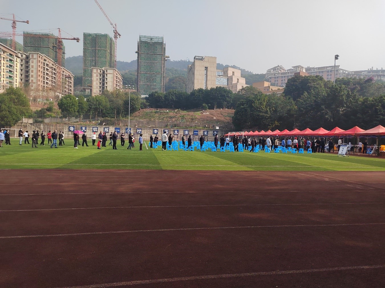 保卫处干部18人、安保大队49人、国力天龙公司3人完成核酸检测,校外、兰花湖、家属区、隔离人员按规定参与相应的核酸检测。