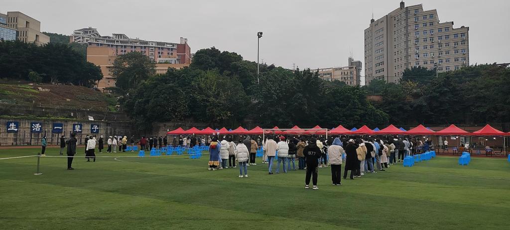 在校内办公区的保卫干部、安保队员、合作单位员工完成核酸检测。