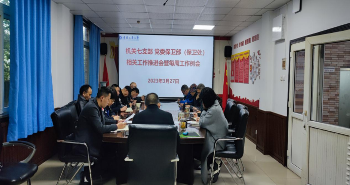 3月27日上午,机关七支部、党委保卫部(保卫处)在支部党员活动室召开了相关工作推进会暨每周工作例会,支部党员、保卫干部、安保大队队长和副队长参加了会议,支部书记、党委保卫部部长(保卫处处长)钱忠坤同志主持会议。