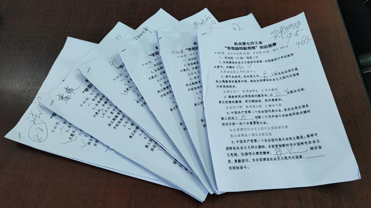 为深入推进学习贯彻习近平新时代中国特色社会主义思想主题教育,在集体乘车前往茶园新校区的路上,工会主席王鹤立组织会员开展了“学思践悟新思想”知识竞赛,经过自行答题、交叉改卷,最后,机关第七党支部书记钱忠坤、支委委员何炫梁两位同志以96分的成绩获得并列第一名。