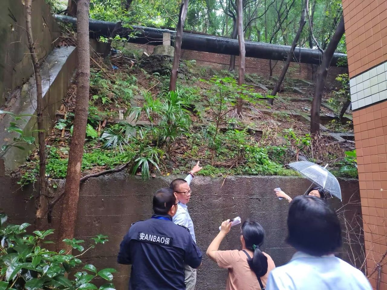 为深入贯彻落实习近平总书记关于防灾减灾工作的重要批示精神和《重庆市教育委员会转发教育部发展规划司关于进一步做好防汛减灾工作的通知》(〔2024〕-479)的安排部署,及时排查发现整改汛期风险隐患,按照分管校领导的要求,6月28日上午,党委保卫部(保卫处)会同后勤处、基建处、物业公司对南岸校区边坡堡坎可能存在的汛期风险隐患进行了专项排查。重点排查了明德楼路口边坡、留学生公寓背后的市政排水口、研究生公寓周边堡坎、临工宿舍、翠湖公园、北区18栋学生公寓边坡、学校与南山云景小区之间的围墙、保卫处办公楼旁边围墙等区域和点位。对排查出来的风险隐患,由后勤处登记后会同相关部门制定整改措施,争取尽快整改到位,以确保安全。