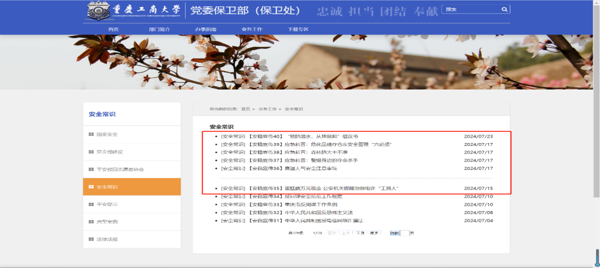上一条:党委保卫部(保卫处)召开高温天气安全防范工作会 下一条:我校荣获“2019-2023年重庆市国家安全工作先进集体”荣誉称号