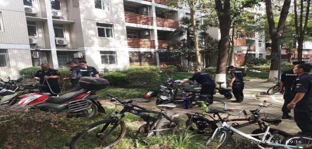 十、专项工作顺利推进。一是开展了“拆窗破网”专项工作。拆除学校防盗网480个(约1700平方米)、窗户防爬刺324个(每个窗户3个)、铁门41扇(约125平方米)。二是持续开展消防车通道专项整治。学校每日坚持对校园消防车通道进行规范管理,持续纠治在消防车道上的违停车辆。三是电动自行车安全隐患全链条整治行动。按照规范要求设置电动自行车充电点1个,在校内所有楼栋粘贴禁止电动自行车“进楼入户”安全提示150张。四是开展打通消防“生命通道”攻坚行动工作。五是开展了无牌无证电动车整治约112辆。六是完成了南岸校区部分道路减速带的更换安装共20条。七是对校内消防设施进行维护,更换灭火器 312 具,室外消火栓除锈刷漆133个,接合器90个。