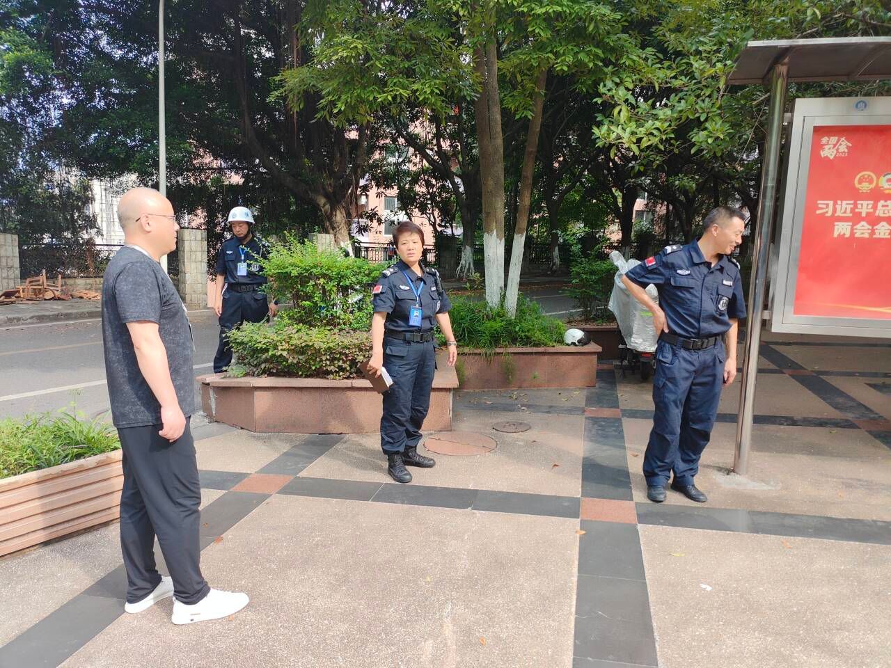 为确保暑假期间校园安全稳定,党委保卫部(保卫处)全面贯彻落实市教委系列通知要求和校领导指示精神,结合学校实际,扎实做好各项安稳工作。全体保卫干部和安保队员战高温、斗酷暑,坚持24小时值班,积极受理报警求助,常态化门卫管控,开展校园巡查,排查安全隐患,处置突发事件,提供安全服务,稳步推进各专项工作,全力守护暑期校园安全。