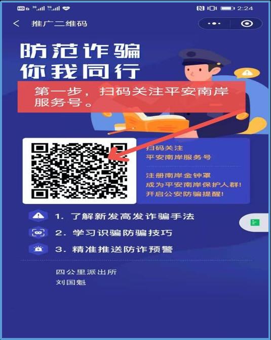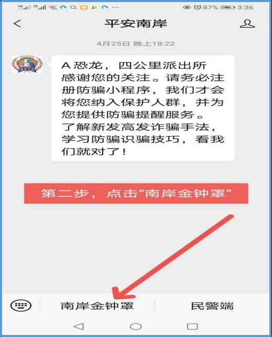 【第一步】:扫码关注“平安南岸”服务号