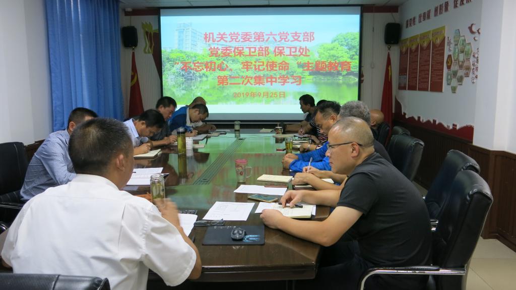 9月25日上午,2003网站太阳集团第六党支部在支部党员活动室召开了“不忘初心、牢记使命”主题教育第二次集中学习研讨会,支部全体党员、保卫部处全体干部参加了学习研讨会。会议由支部书记钱忠坤主持。