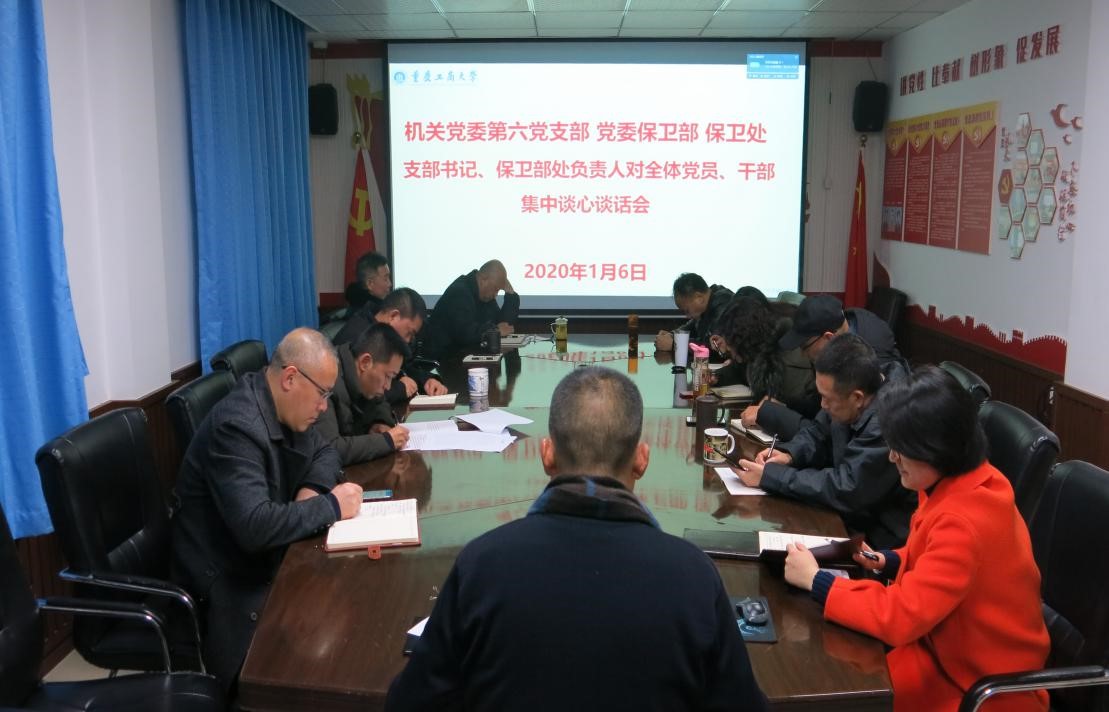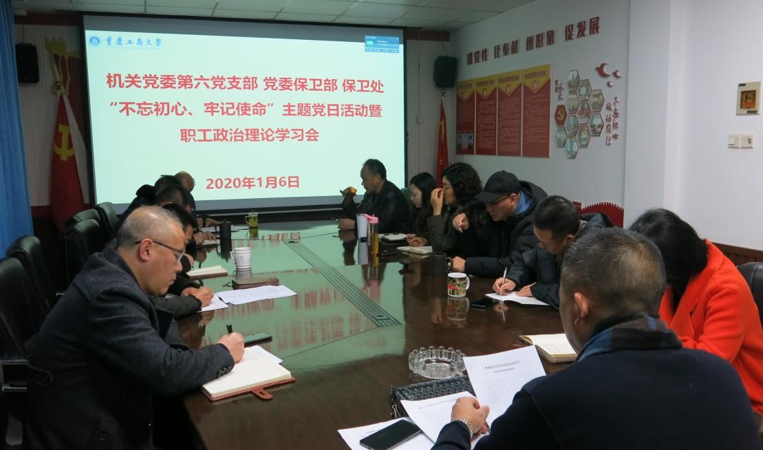 1月6日上午,2003网站太阳集团第六党支部在党员活动室召开了“不忘初心、牢记使命”主题党日活动暨职工政治理论学习会,支部全体党员、保卫处干部以及校园安保服务大队队长、党员参加了会议,会议由机关六支部书记钱忠坤主持。