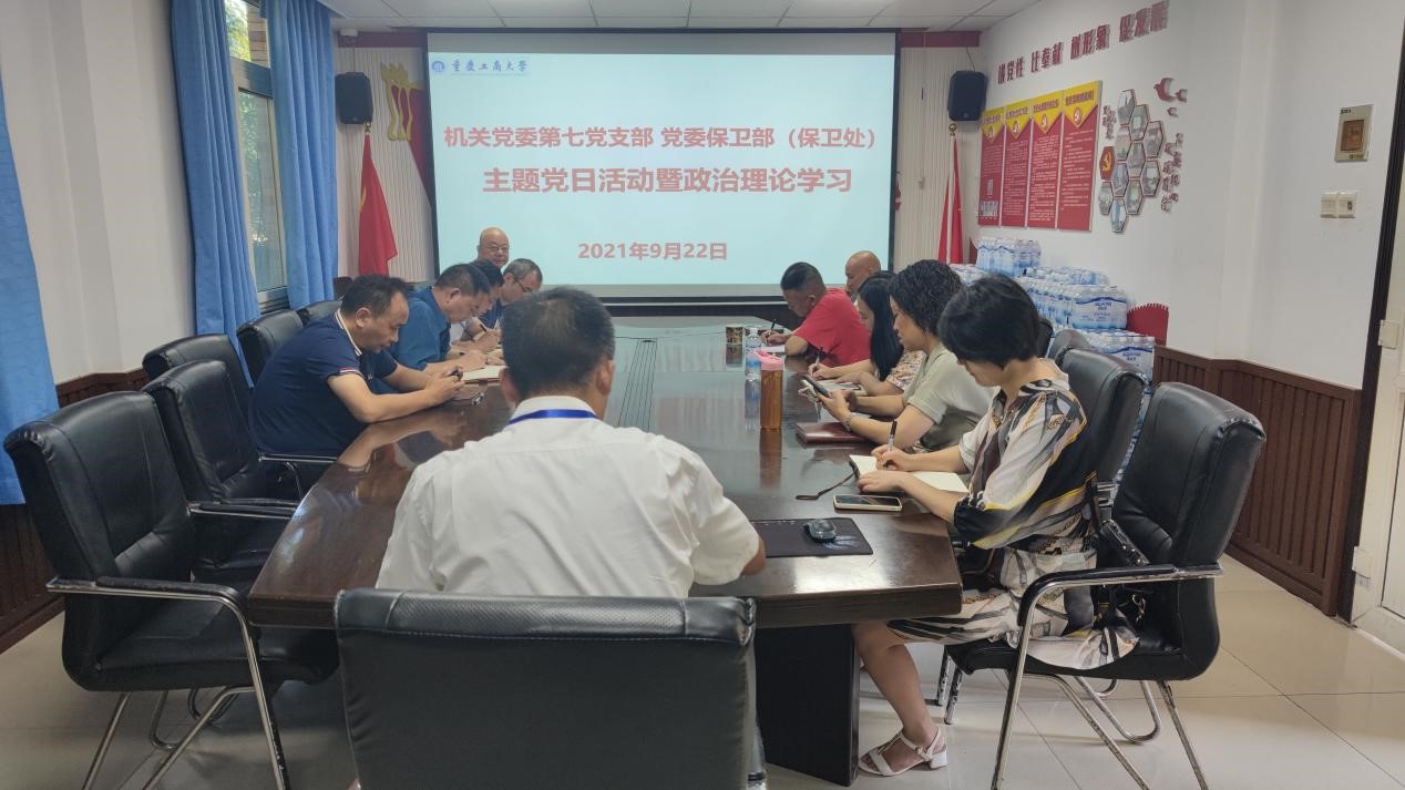 9月22日上午,2003网站太阳集团第七党支部在党员活动室开展了9月份第二次主题党日活动暨职工政治理论学习会,支部全体党员、干部及校园安保服务大队队长副队长参加了会议,会议由支部书记钱忠坤同志主持。