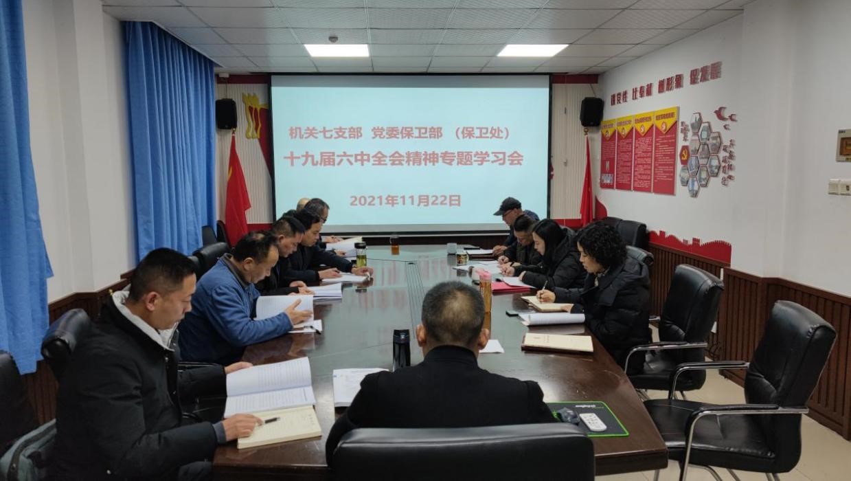 为深入学习贯彻党的十九届六中全会精神,2021年11月22日上午9:00-11:00,机关七支部、党委保卫部(保卫处)在党员活动室召开了党的十九届六中全会精神专题学习会。全体党员、干部、安保大队队长参加了会议,会议由支部书记钱忠坤主持。