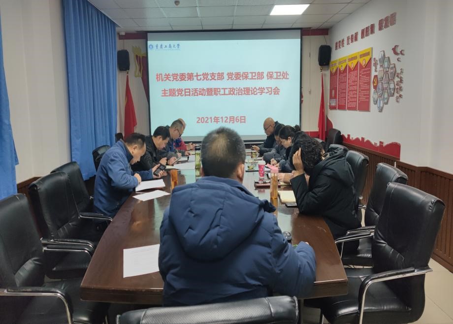 2021年12月6日上午,机关七支部在党员活动室开展了主题党日活动暨职工政治理论学习会,支部党员、干部、安保大队队长副队长参加了会议,会议由支部书记钱忠坤同志主持。