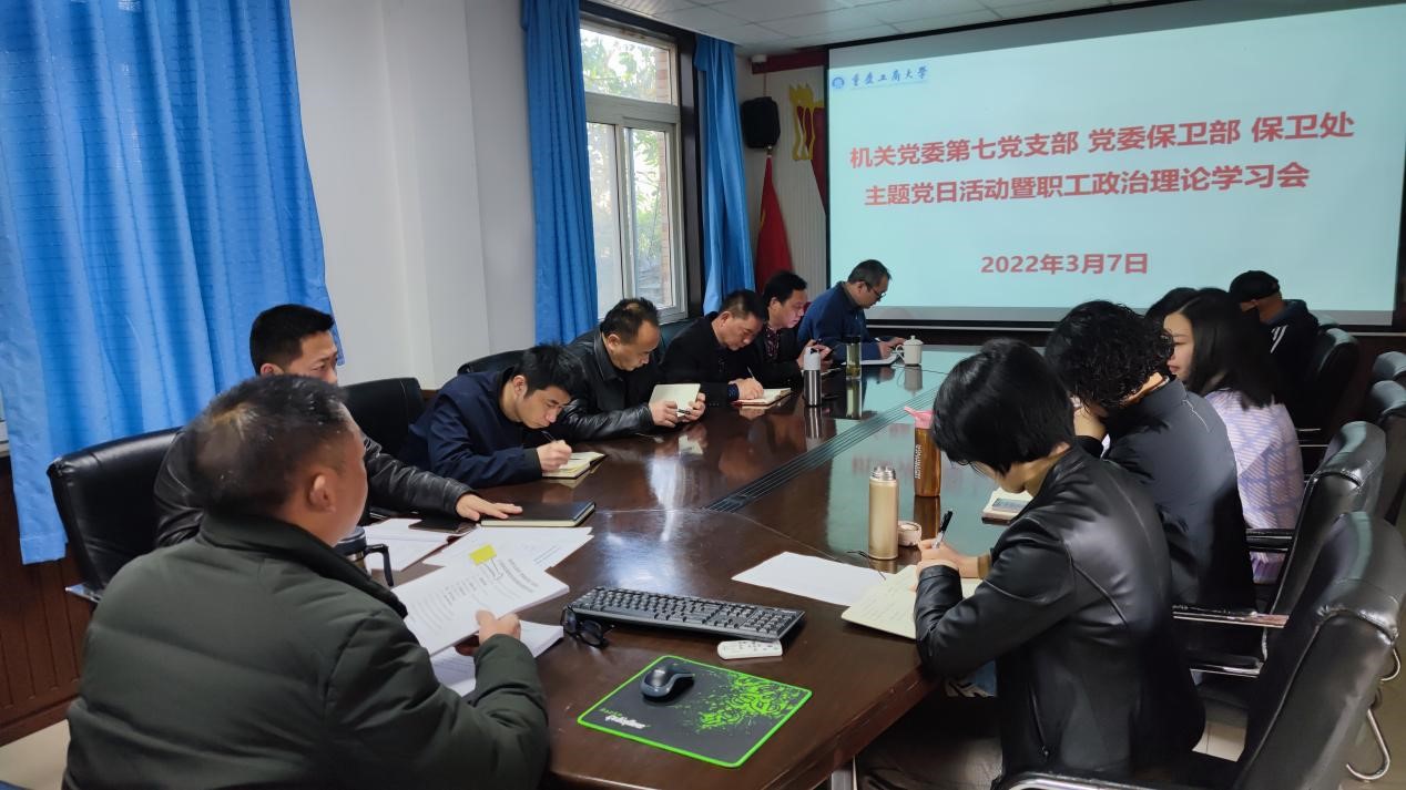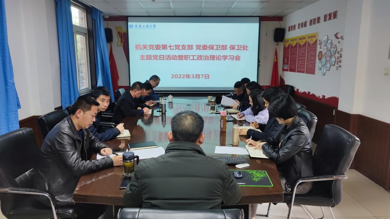 3月7日上午,2003网站太阳集团第七党支部在党员活动室开展了主题党日活动暨职工政治理论学习会,支部全体党员、干部、安保大队队长副队长参加了会议,会议由支部书记钱忠坤同志主持。