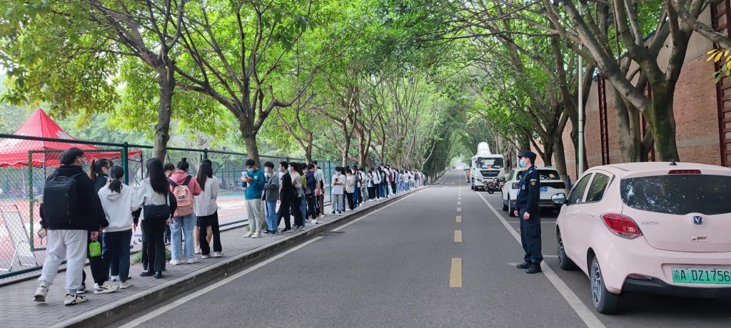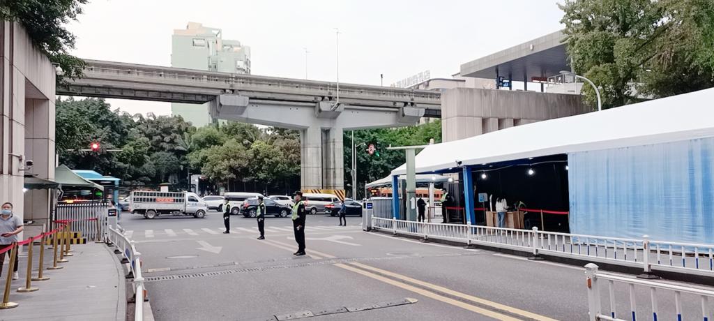12:00,值班干部何立军带领安保大队开展核酸检测安保工作。