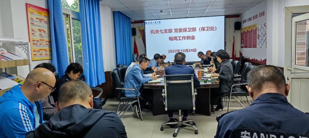 9:00,机关七支部、党委保卫部(保卫处)在会议室召开了每周工作例会,会上对加强门卫管控、做好零星学生返校核查工作、做好核酸检测安保工作等进行了安排部署,要求持续巩固疫情防控成果,确保学校安全稳定。
