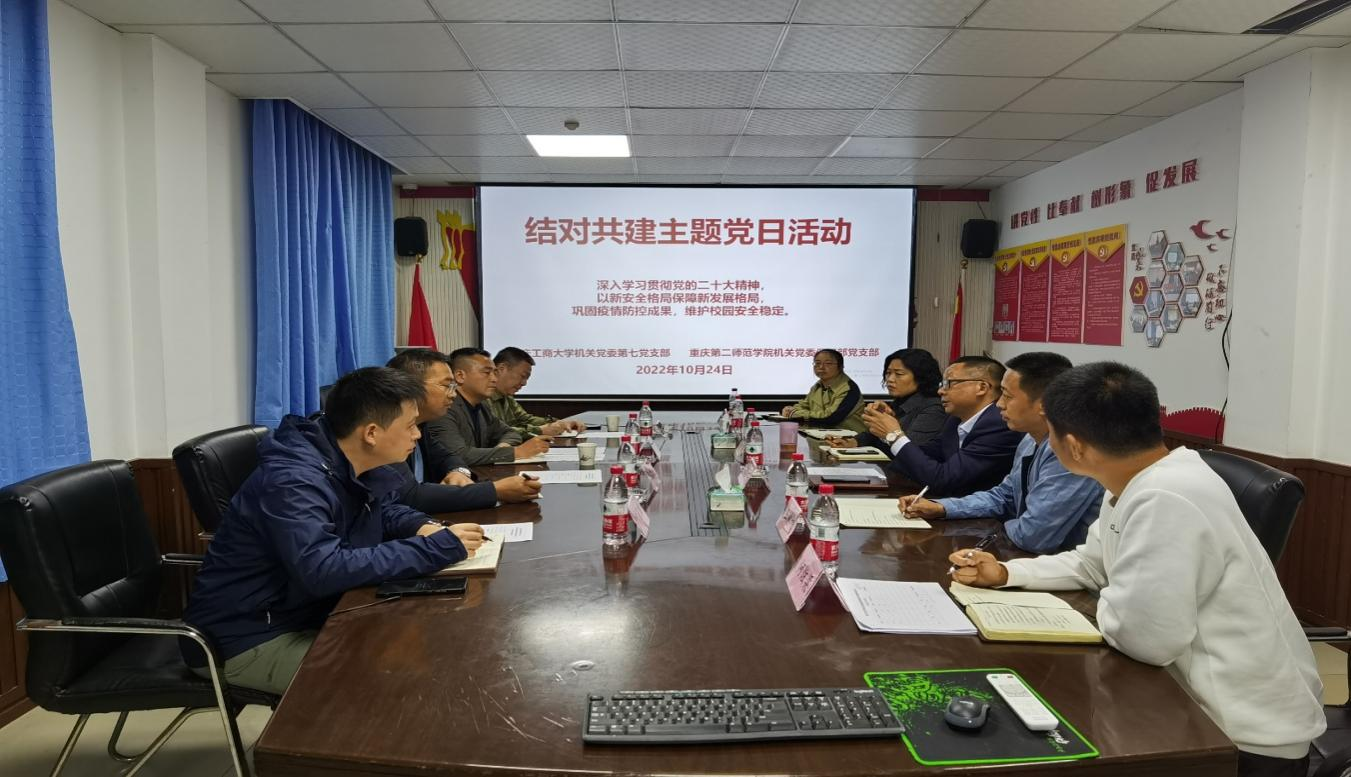 为深入学习贯彻党的二十大精神,巩固校园疫情防控成果,维护学校安全稳定,10月24日下午,重庆工商大学2003网站太阳集团第七党支部邀请结对共建的重庆第二师范学院2003网站太阳集团保卫部党支部到校开展主题党日活动。