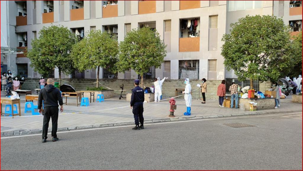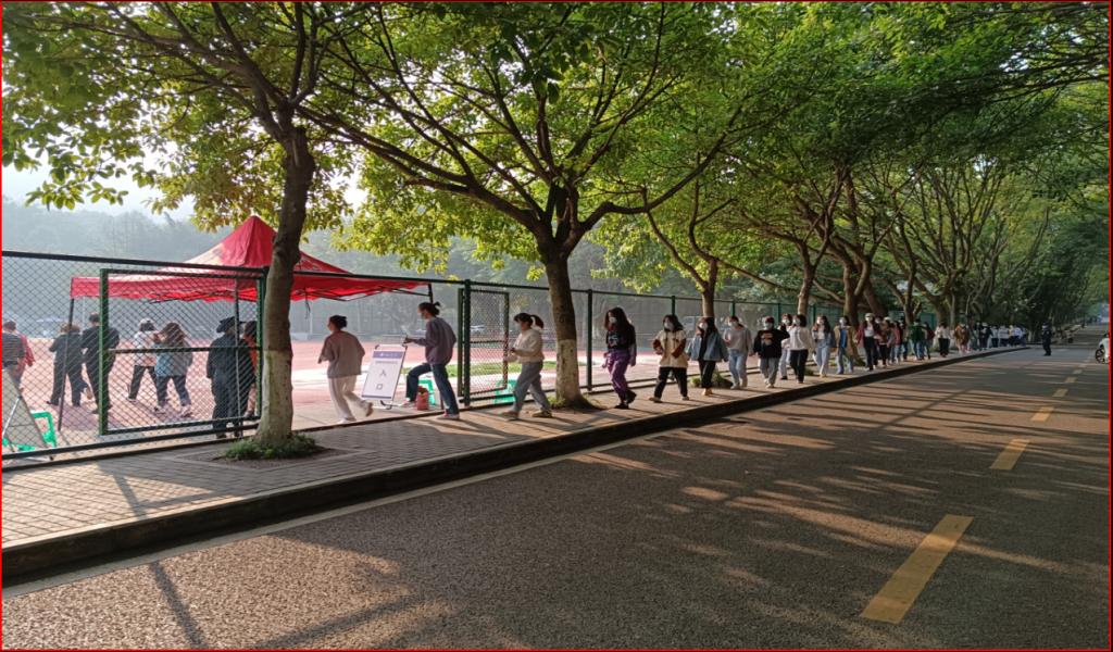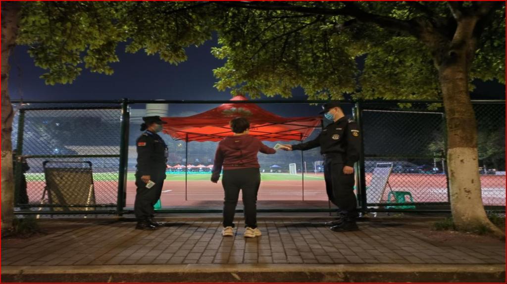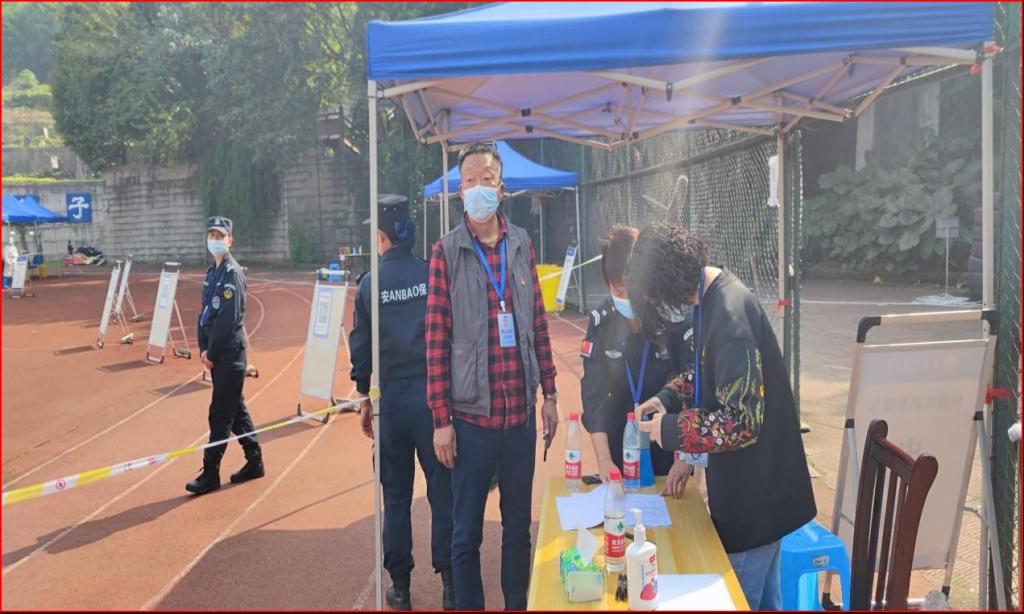 活动第二阶段,全体同志深入一线开展工作。中午12:30,在钱忠坤同志的统一指挥调度下,全体同志以饱满的精神状态奔赴各自岗位开展工作。王树坤同志带队负责一二号门管控;刘照禄、何立军同志负责家属区管控;曹晓丽、胡慎奎、吴佳、杨岚钦同志负责南区运动场核酸检测现场秩序维护;何炫梁、刘兵、吴波同志负责北区运动场核酸检测现场秩序维护;张毅、吴春雪同志负责新北区高层公寓管控;田正宏、黄岗同志继续开展流调工作;王鹤立同志负责后勤保障工作;秦爽同志在家负责防疫数据的统计上报工作。