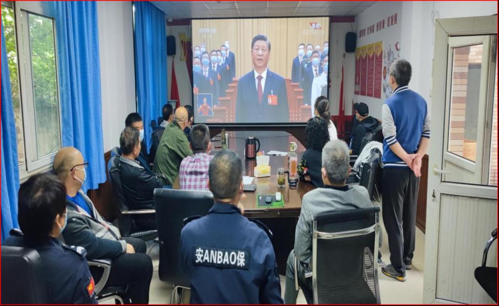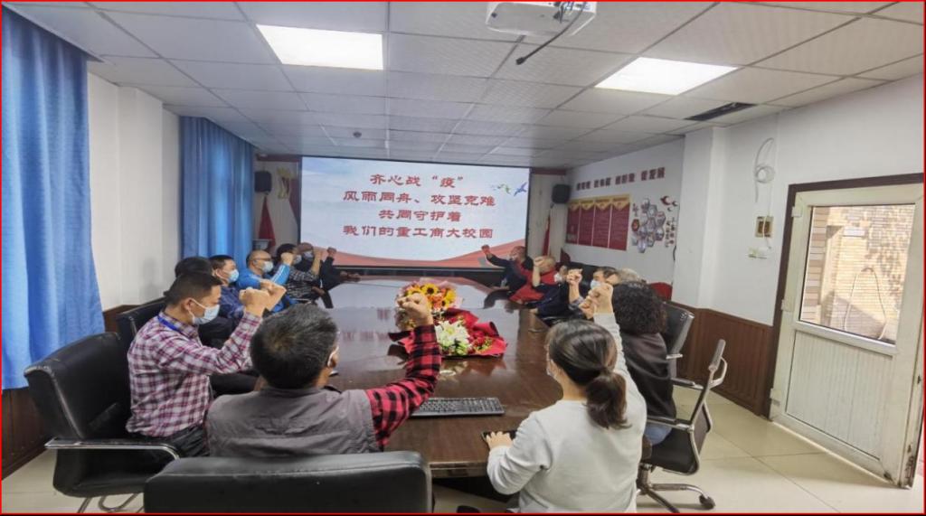 2022年10月16日,是非常特殊的一天,上午10点,我们期盼已久的党的二十大胜利开幕,同时,在学校党委和行政的坚强领导下,学校疫情防控阻击战进入到第六天的关键时期。为进一步提振大家的精气神,进一步激发大家的战斗热情,机关七支部全体党员、干部、安保大队队长副队长在党员活动室、工作岗位上、监控指挥中心开展了一次特殊的主题党日活动。学校党委副书记宋豫同志以普通党员身份参加了活动,学校党委常委、组织部部长郑夕春同志到场参加并指导活动的开展。此次特殊党日活动的主题是“深入学习贯彻党的二十大精神,以新安全格局保障新发展格局,坚决打赢校园疫情防控阻击战”。