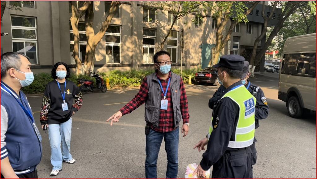 新北区域管控组由支委委员、保卫处副处长曹晓丽带领党员刘照禄、田正宏、黄岗、吴佳和安保队员负责,18日至21日共计投入干部、队员60余人次,主要任务是区域管控,严防南北区域人员交叉,同时维护好送餐时间段整个区域的正常秩序。