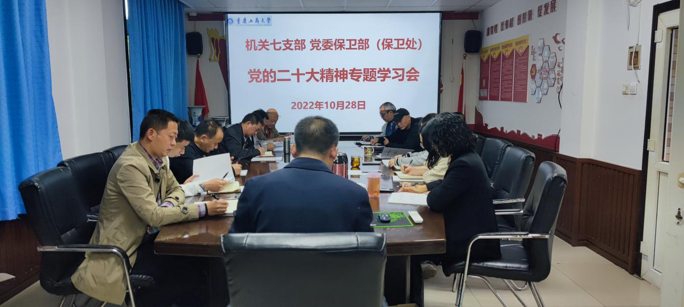 为深入学习贯彻党的二十大精神,10月28日10:00,机关七支部、党委保卫部(保卫处)在党员活动室召开了党的二十大精神专题学习会,支部党员、部门干部、安保大队队长副队长参加了会议,会议由支部书记、党委保卫部部长(保卫处处长)钱忠坤同志主持。