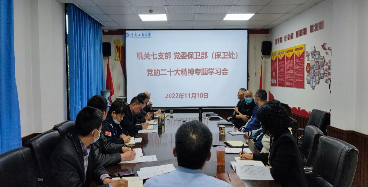 为全面学习贯彻党的二十大精神,11月10日上午9:30,机关七支部、党委保卫部(保卫处)在党员活动室召开第三次党的二十大精神专题学习会。支部党员、部门干部、安保大队队长副队长参加了会议,会议由支部书记、党委保卫部部长(保卫处处长)钱忠坤同志主持。